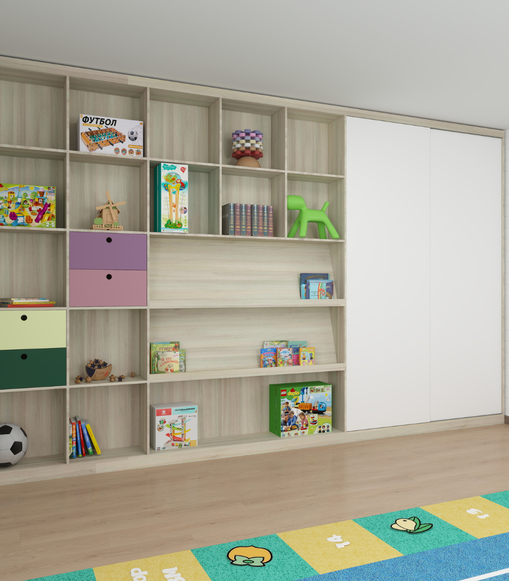 The Growing Wall is a thoughtfully designed storage unit that keeps books, toys, and everyday essentials neatly in place. With open shelves and closed storage, it encourages kids to find, use, and put things back on their own. Perfect for playrooms, bedrooms, and learning spaces.