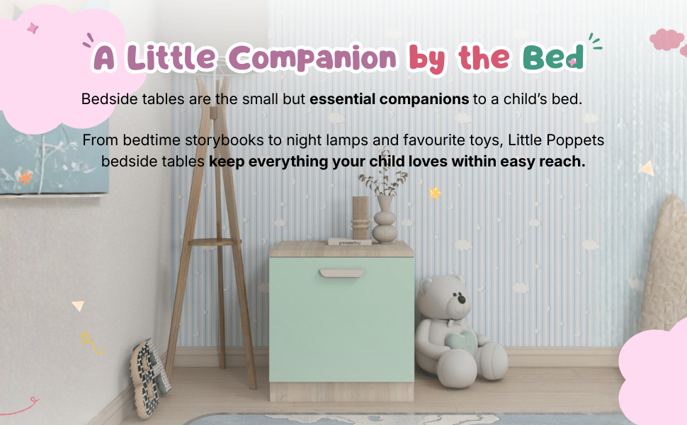 Say hello to The Midnight Buddy – a side table designed to make your child’s bedtime routine smoother and cozier! With its soft wood finish and open-shelf design, it holds everything from storybooks and nightlights to that secret stash of bedtime snacks (we won’t tell).