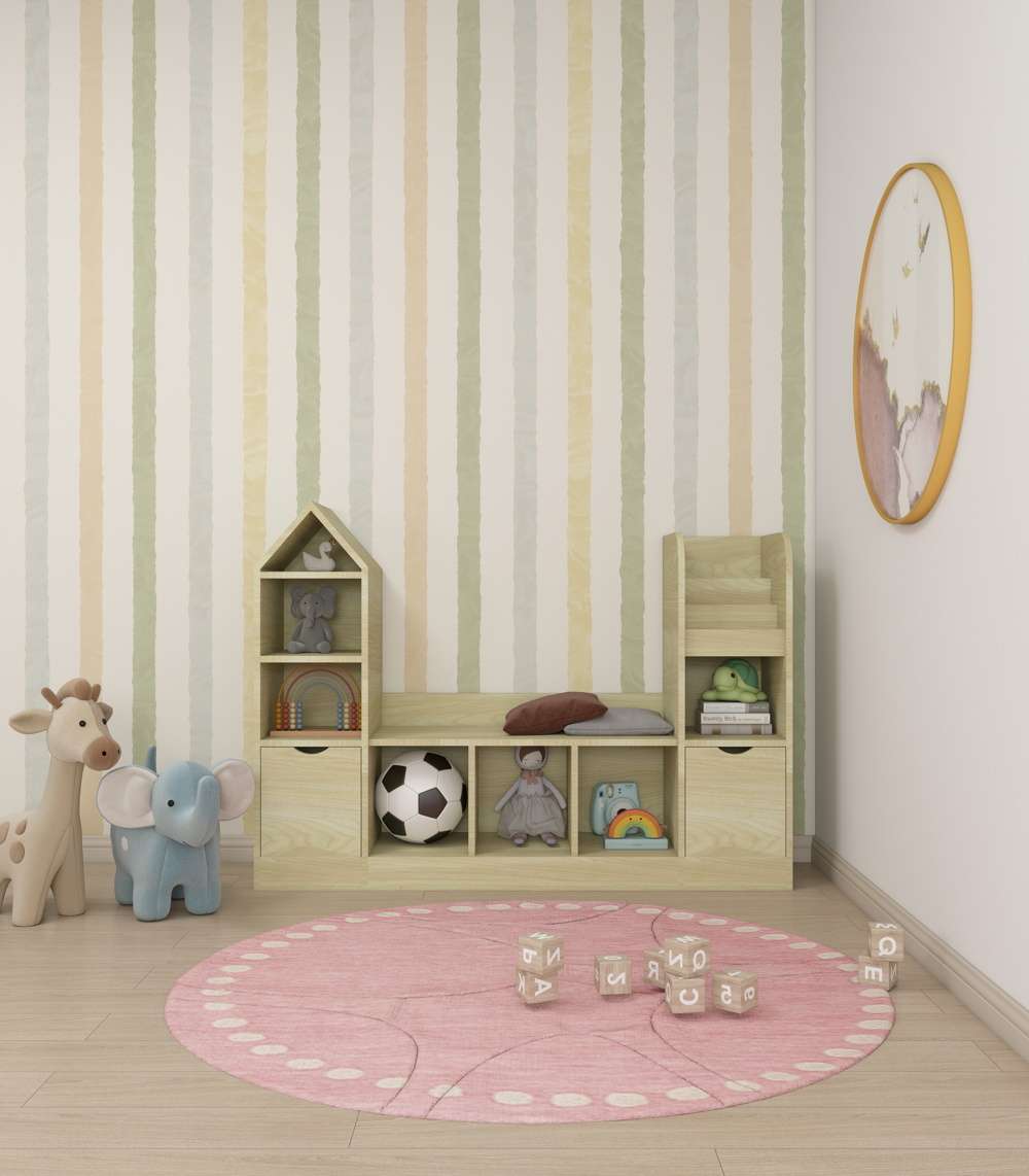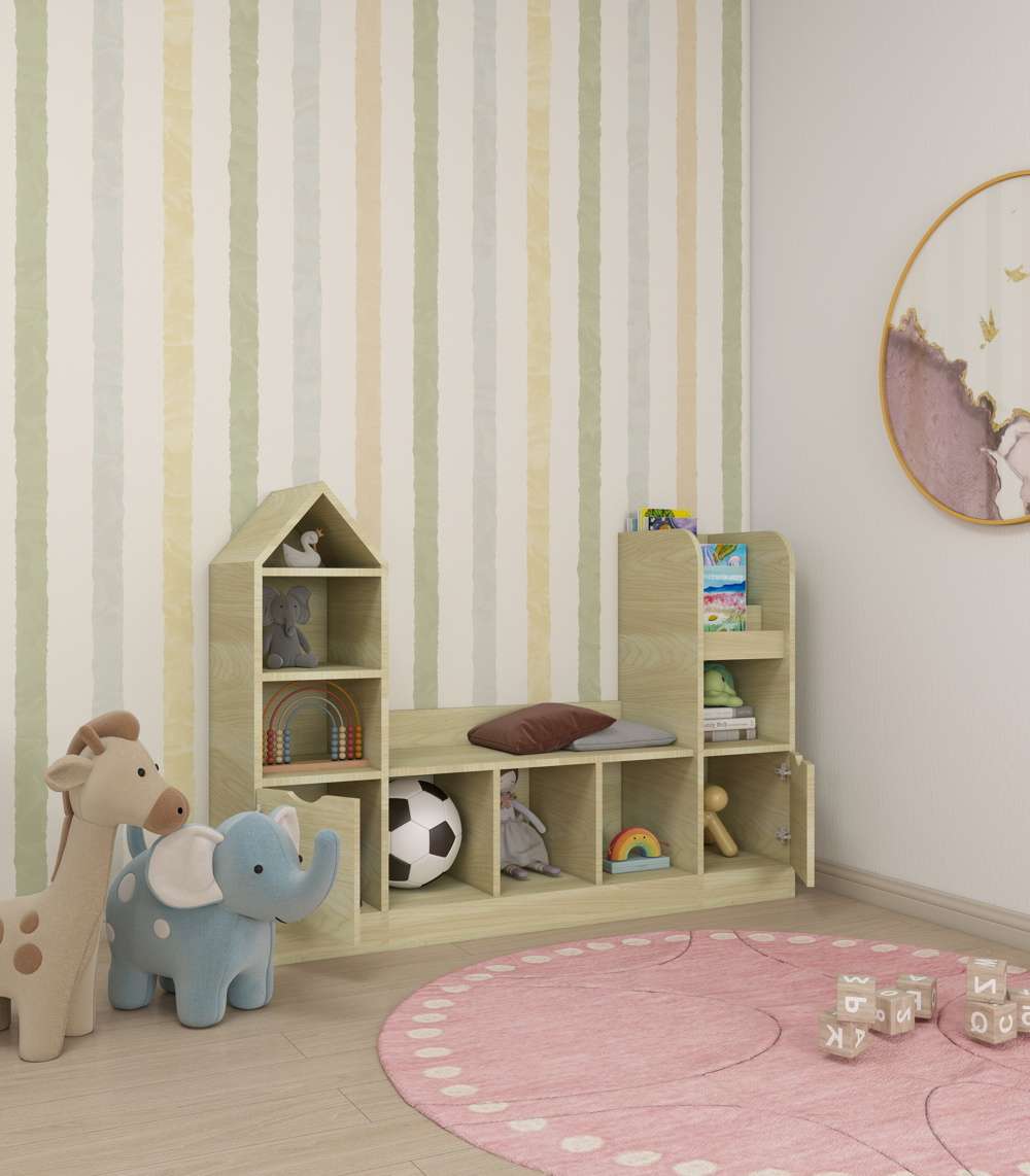 Designed at just the right height for young imaginations to reach and roam, this long, low unit makes cleanup feel like play. Its scalloped trim adds a gentle fairytale feel, while the wide open cubbies help kids learn independence (and maybe even a bit of tidying up). Made from sturdy engineered wood with smooth, rounded edges, it’s built for big energy and soft landings.