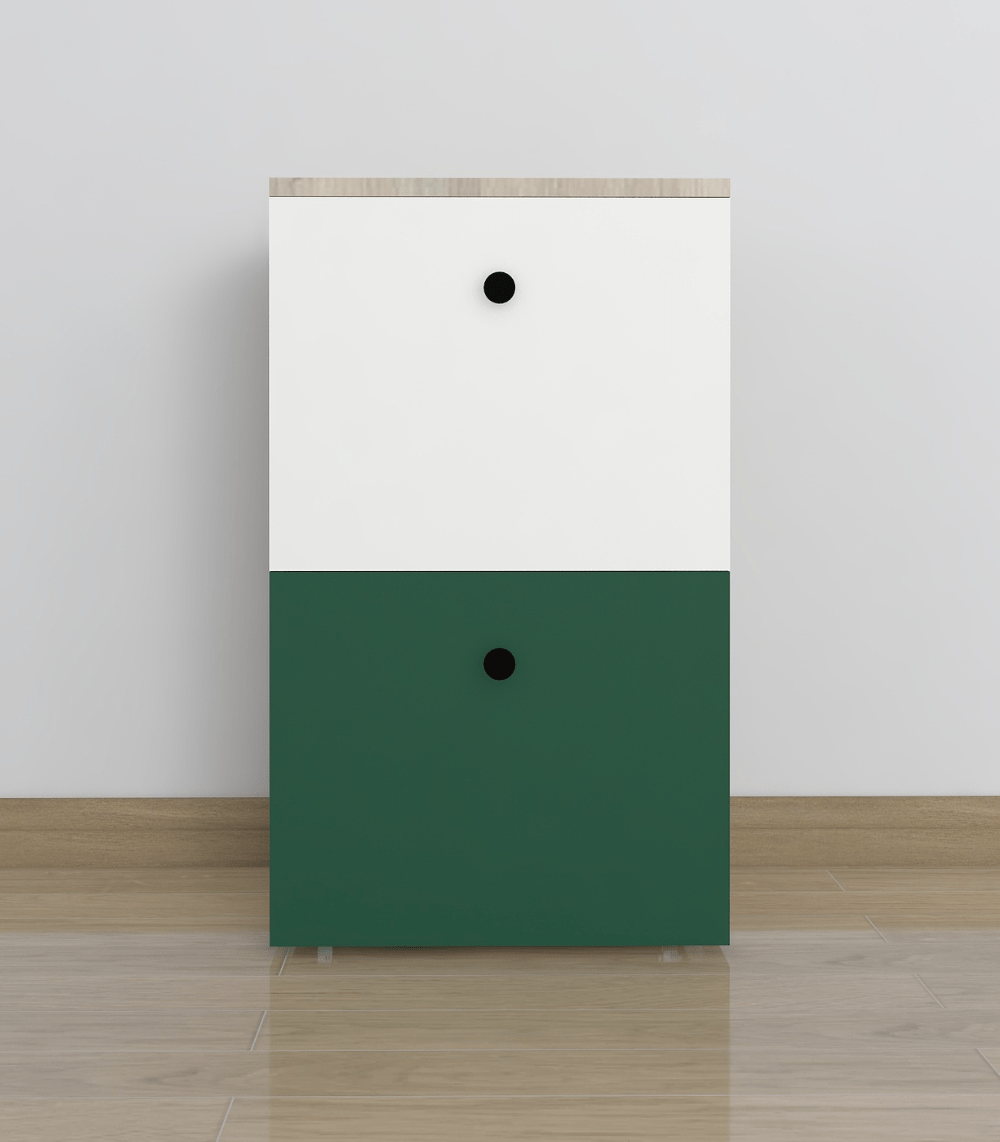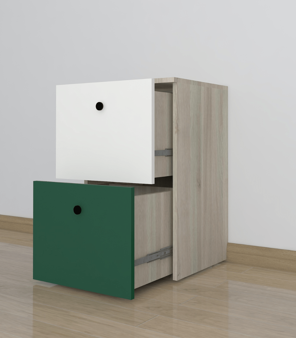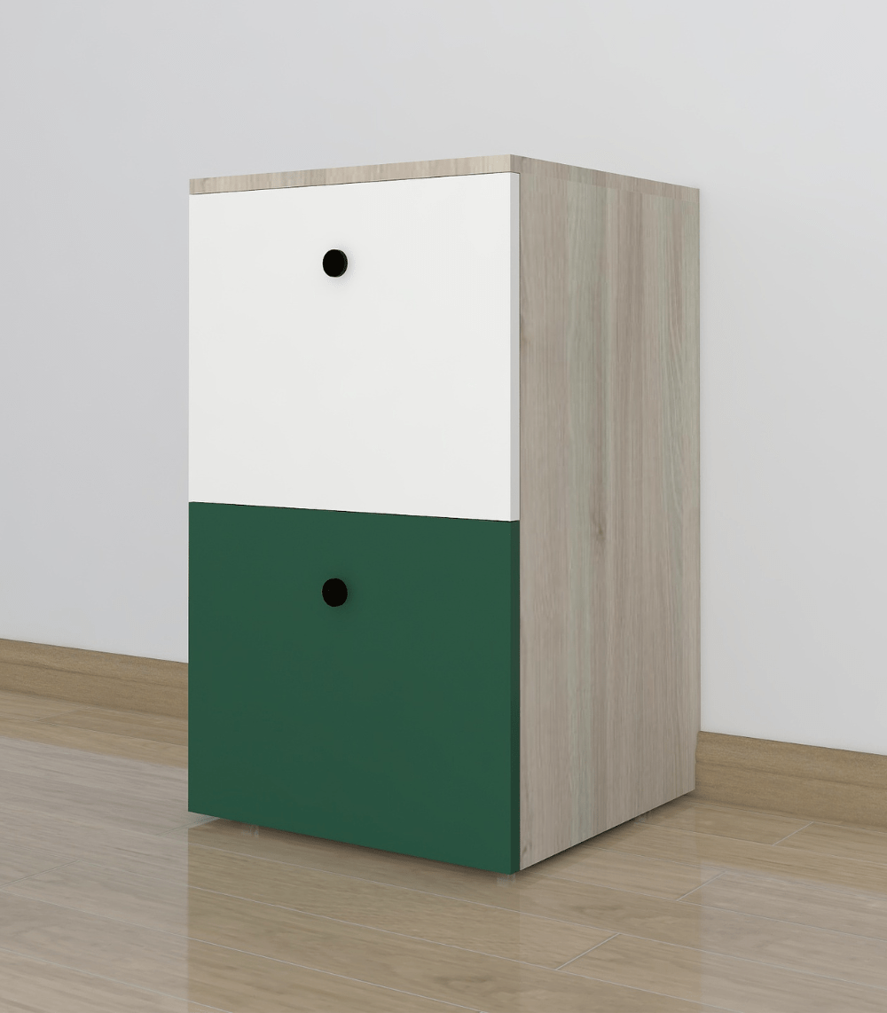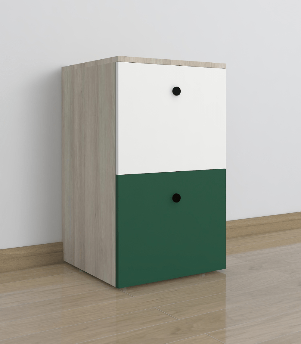 ✔ Stylish color-block drawers — green for fun, white for calm
