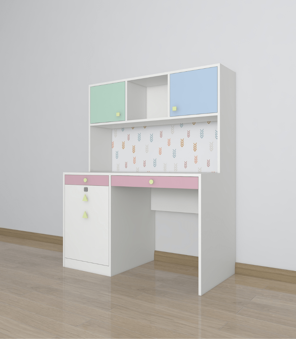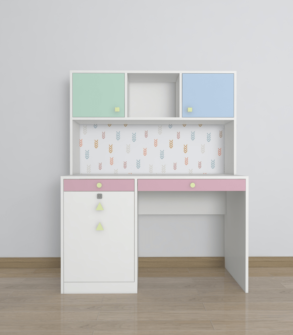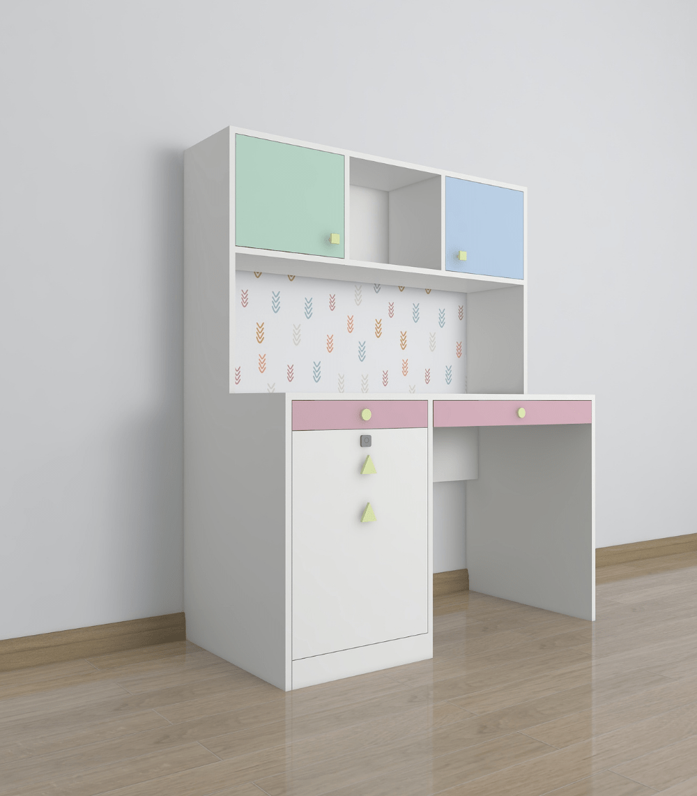 The Scholar Space is more than just a desk – it’s a launchpad for learning and a haven for homework! With pastel-hued cabinets, playful patterns, and thoughtfully crafted drawers, this desk brings both brains and beauty to your kiddo’s study setup.